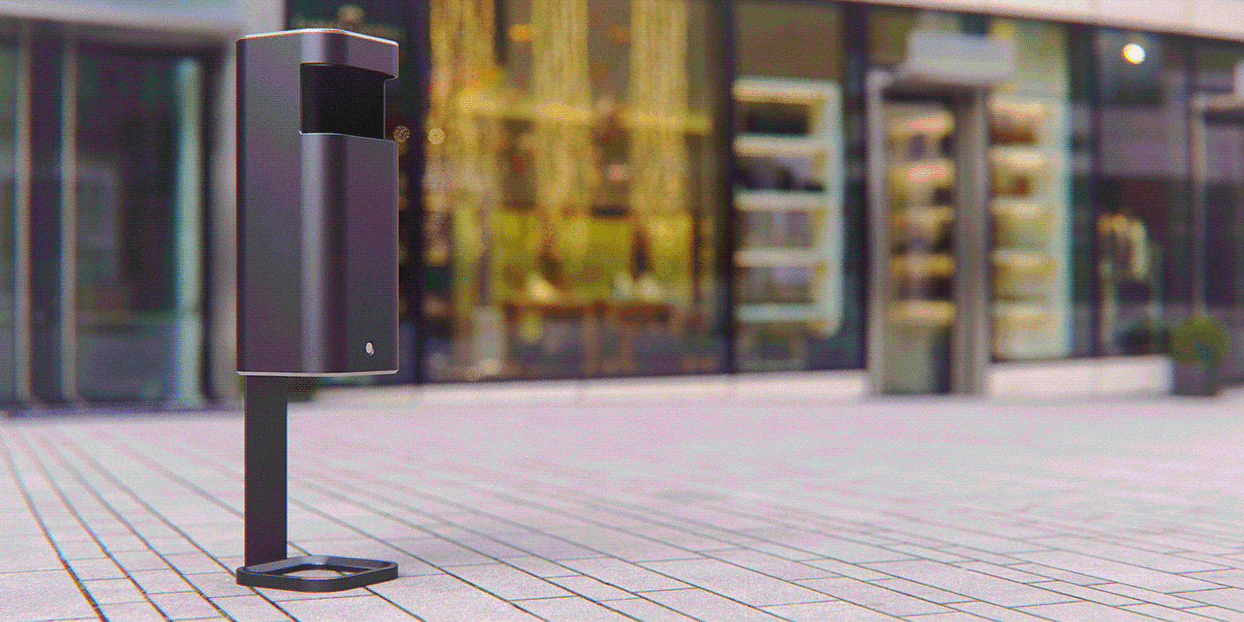 这同样是一款重新设计的城市垃圾桶设计,更加注重外观设计,设计师通过3D渲染的形式来展现更适合城市街景的垃圾桶创意设计。外观设计上,它是一个简洁的垂直细长的盒子,边缘柔和圆润,配色上也更加讲究,更适合都市使用。