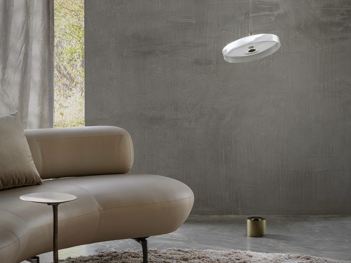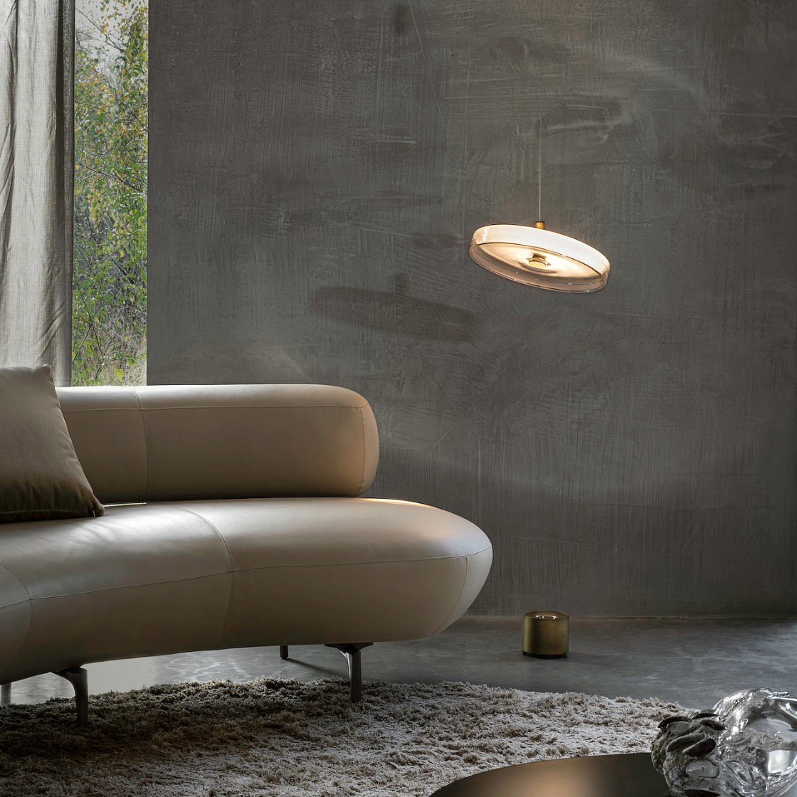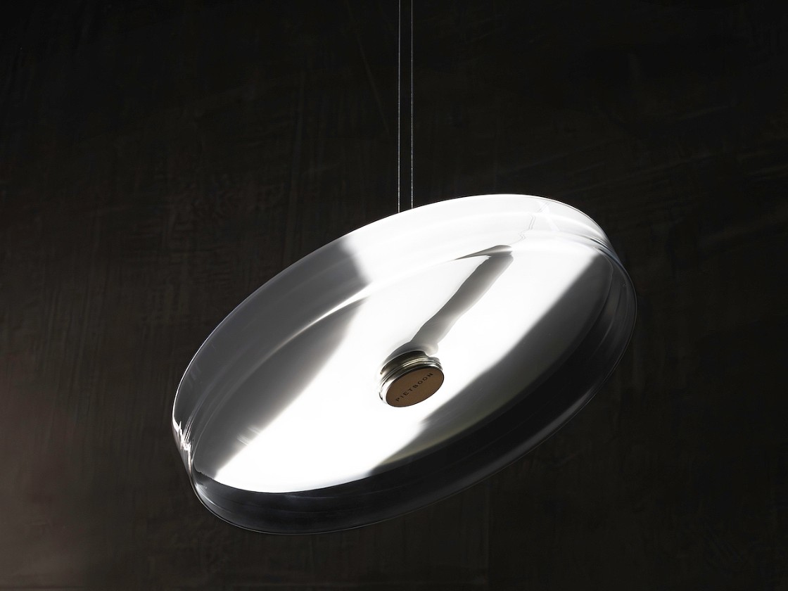 Luno 是一款重新设计的灯具产品设计,它是一款艺术感十足的高颜值吊灯设计,相比传统的灯具,它的设计更加新奇,以为光源与展示是分离的,它由展示的装饰装置和金属灯组成,一圈磨砂内层+清透外层的玻璃光环悬浮空中,却不自带光源。