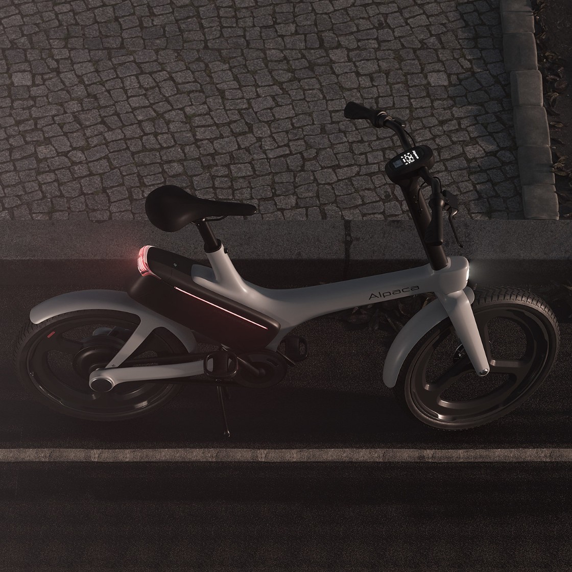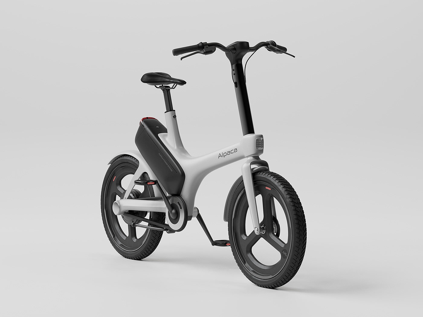 Alpaca 是一款重新设计的电动自行车设计,其应用场景偏向于共享市场,专为都市电动自行车共享市场而设计,简洁时尚的车身设计更符合现代都市年轻人的审美,同时也更适合共享电动车市场需求。
