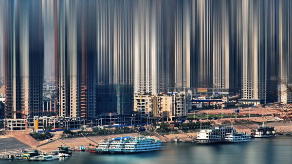 本文效果图中运用的只是简单的动感模糊滤镜,但是这个PS滤镜做出来的效果可以非常有创意,使得建筑有一种动感的效果,而且画面也变得简洁了很多。如果同学们感兴趣的可以尝试一下。