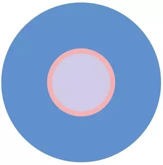 选中圆造型,按快捷键Ctrl+C复制,再按Ctrl+V粘贴一份,将粘贴的圆按住Shift键同心缩小,接着再执行一次复制粘贴,我这里以三个不同颜色以作区分,如图所示。
