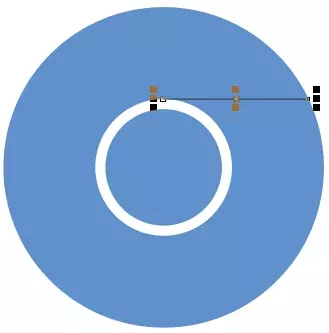 选择工具箱中的“手绘工具”按住Ctrl键绘制一条直线,要保证这条直线与中间的圆相切的状态,如图所示。