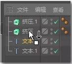 第九步:选中【文本】,按住左键不放拖拽到挤压上,出现向下箭头时松开,形成父子关系