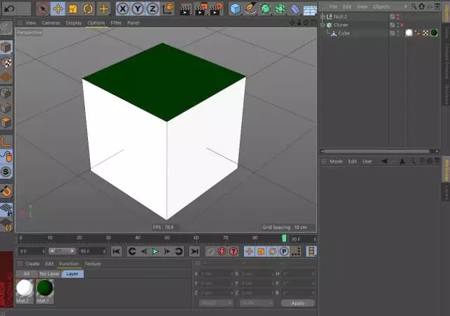 第二步:新建一个边长为10的立方体,按C转为可编辑的多边形对象,给顶部一个深色的材质,周围给一个白色的自发光材质。