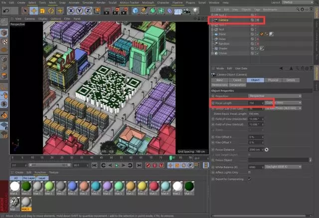第十二步:建立摄像机,调整画面的长宽比和构图,这里我使用1:1的正方形画面。这里要尤其注意,摄像机的镜头焦段要用非常大的,让近大远小的透视效果非常弱,如果透视过大,在摄像头扫描和微信长按时是没法识别的。