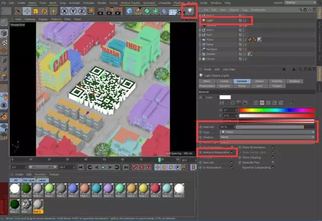 第十一步:建立数个不同颜色的材质,给到场景,设置如图。