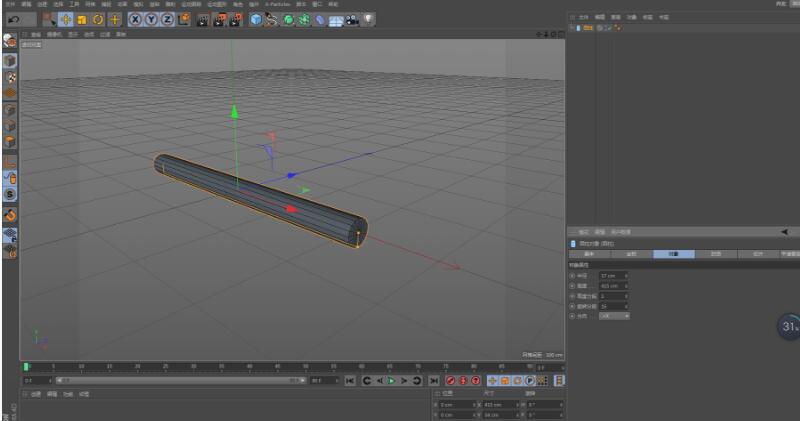 第一步:建立一个圆柱体,缩小半径增加高度,旋转分段调为16,方向为+X。
