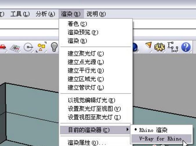 启动Vray For Rhino渲染器,电脑默认是Rhino自带的渲染器,切换一下到Vray。