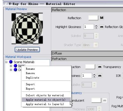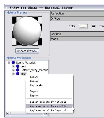 第十一步:选择Vray For Rhino自带材质库中的“磁器”。