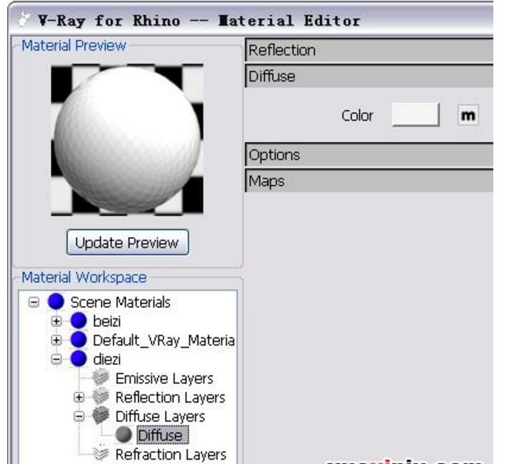 也可打开左边材质层叠文件夹,找到相应的项进行调整。Diffuse (漫反射)、Reflect(反射)、Refract(折射)