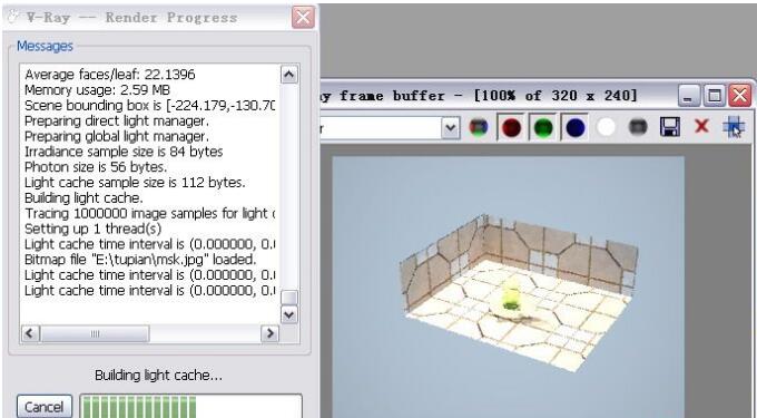 第二十二步:点“渲染”观察一下,感觉“ZUOZI”(桌子)的图案不妥,立即中止渲染。