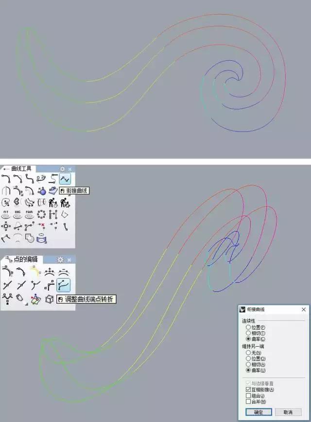 1.在Rhino建模中,对于建立复杂曲面,曲线绘制的连续性非常重要,决定着成面的效果。如果在前期将曲线调好,后面成面会事半功倍。