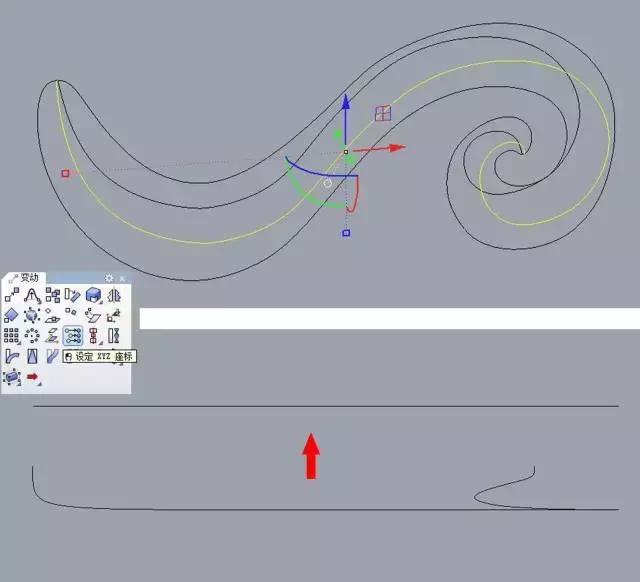 此时需对曲面进行修剪,选中一条中间的轮廓线,复制,“设定XYZ座标”,将线调成同一平面。