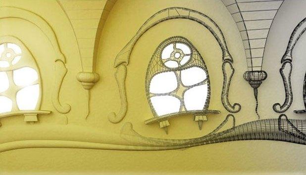 做好一个能够用来支持建模阶段的固定基础打好以后(不只是一张在脑中形成的图),现在要开始为角色和环境建模了。所有的角色和一些物体都是从一个盒子中建立的模型,然后转换成可编辑的多边形。笼子和钓鱼竿是用Lathe 和 Bend 修改器专门用线条建立的模型。背景同样是用Extrude修改器线条建模,鱼缸也是用线条建模,用的Lathe修改器。