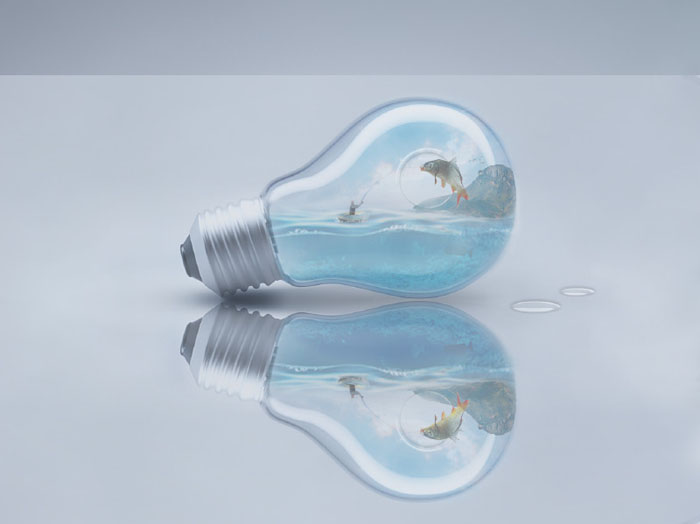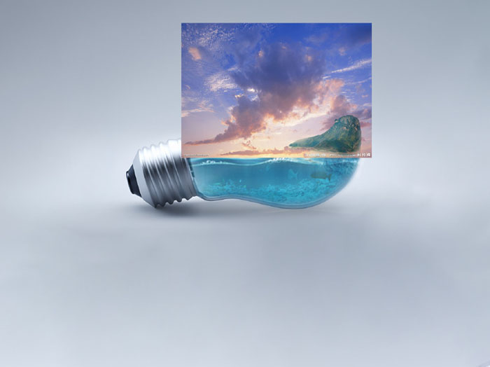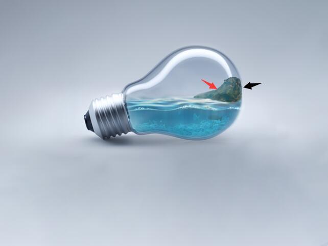8、为灯泡与平面想接的地方添加一点点的反光。