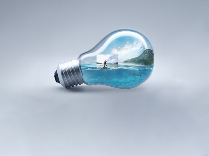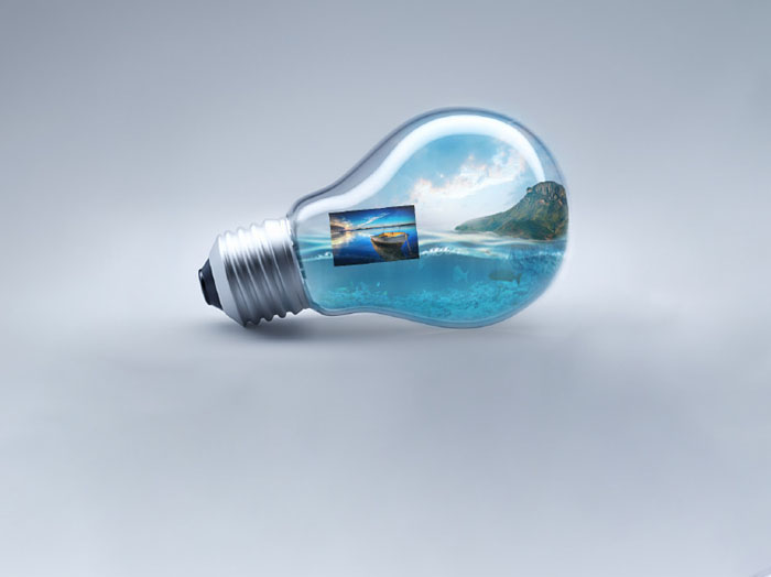 4、再次使用裁剪工具,把画布的大小和灯泡的位置调整一下。