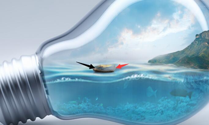 11、拖入海底素材,移动到合适的位置,再添加蒙版,隐藏多余的部分,并调整不透明度。