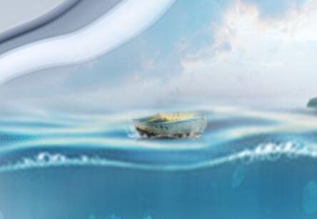 19、为小船添加色彩调整图层,创建剪切蒙版~然后下载个浪花的笔刷,给小船添加浪花。