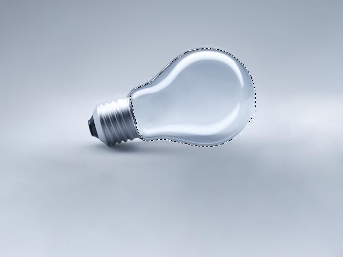 22、返回背景图层,然后抠出灯泡玻璃的部分,移动到最顶层,混合模式改为柔光,不透明度调整一下。