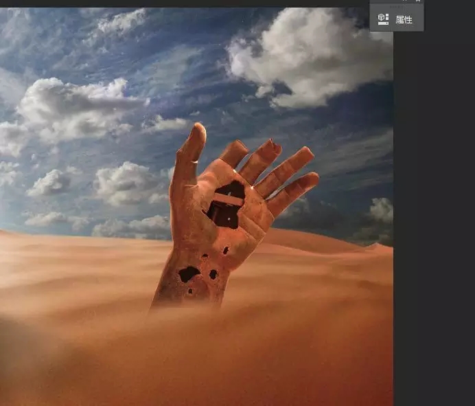 接下来置入沙漠素材,找一个沙漠图片,把沙漠的部分抠选出来,拖入我们最初的文件中。