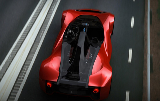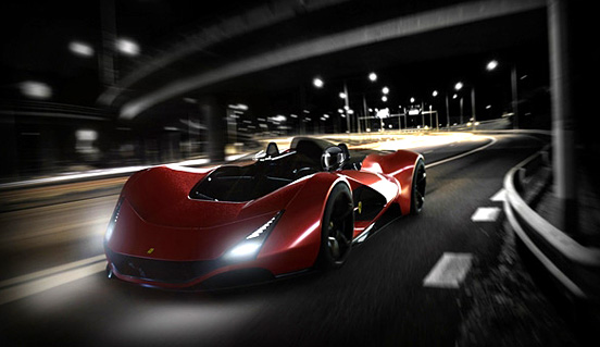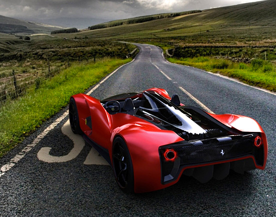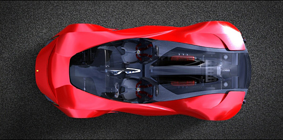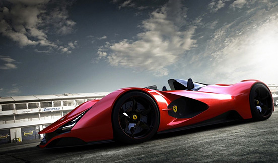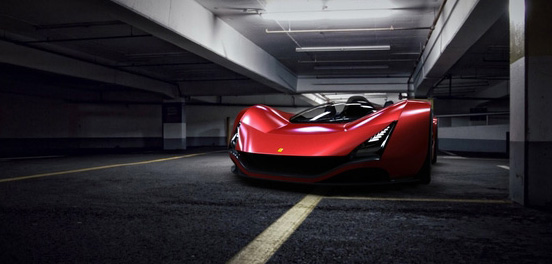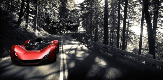 法拉利Aliante概念双座跑车,是法拉利举办的世界设计大赛上的一部作品。灵感来自法拉利一级方程式赛车,它采用丰满的肌肉感和愤怒的前脸设计。红色车身的Aliante前脸极具侵略性,位置偏低的前进气口似乎是一张张开的血盆大口,而与之比邻的细长LED灯组前大灯发出锐利目光,令人不寒而栗。凸起的前轮拱赋予车头肌肉感线条,颇有一夫当关万夫莫开之势。