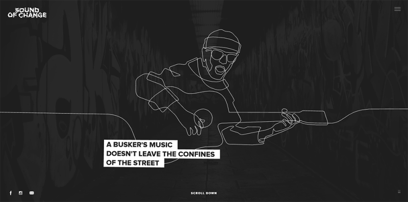 下面这个页面中的小短波浪线,给整个画面带来一种活泼的氛围。两个不同的色块的连接处,由于色彩的不同,在视觉上也能形成一条自上而下的直线。