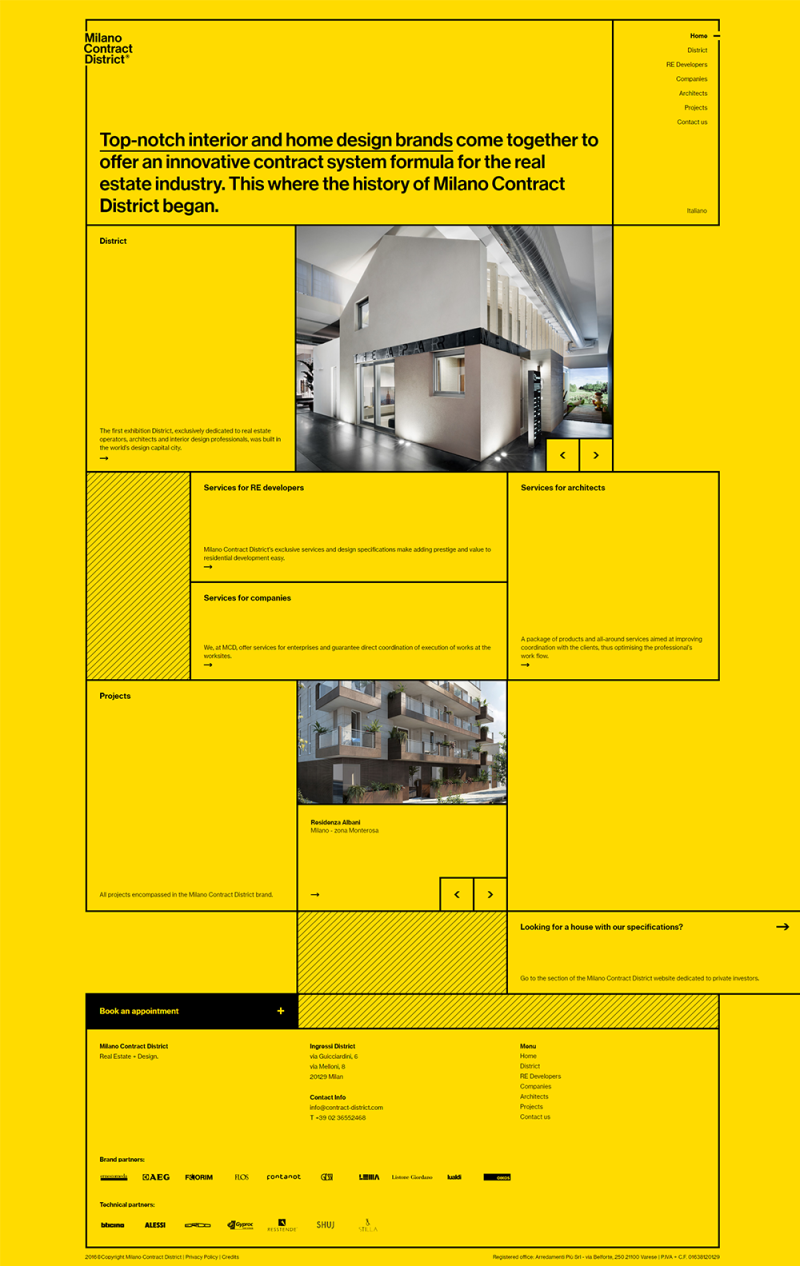 如下面导航中的细细的水平线,表达一种稳定精致的感受。目前在网页设计中也非常受欢迎,这类线条比较简洁,能和任何前景背景都混为一片,丰富细节又能引导用户的视觉方向。