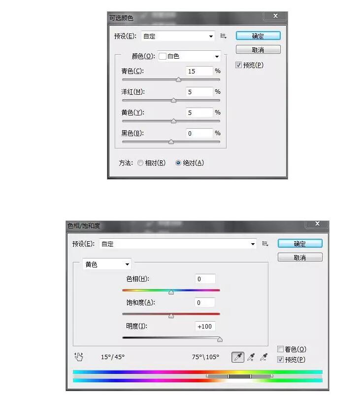 去除虚化的树叶并使用(可选颜色)调整白色对天空进行上色处理,选取人物皮肤使用(色相/饱和工具)中的黄色明度增加100制作人物皮肤高光并且弥补RAW调整时人物面部丢失的细节。