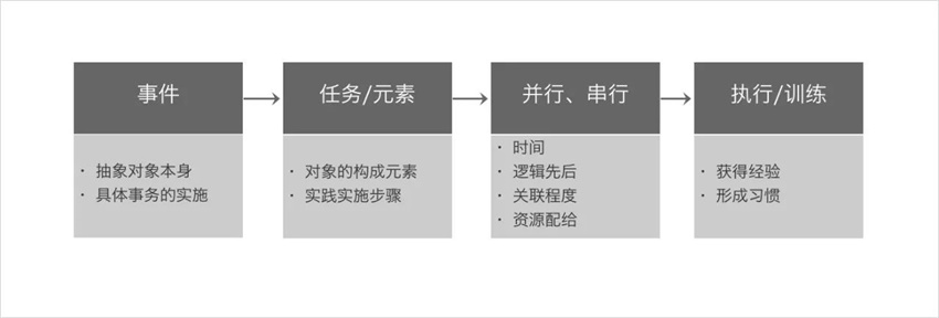 将这些任务或元素进行归整(时间、逻辑先后、关联程度、资源配给),设定并行任务事件、串行任务事件。