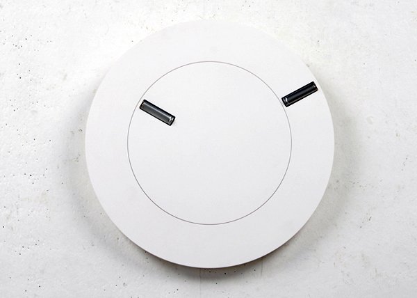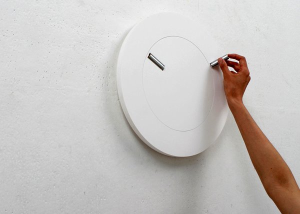 整个时钟非常简洁,时钟表面就只有一个园面和两颗电池。亮白色的时钟表面可以让使用者更好的辨认时间。巧妙的利用电池作为指针,可以节省许多材料,为产品节省了多成本。时钟的表面很简单,只有内外两个电池槽给时钟提供动力和能源保障,而这两个电池不仅起到了能源作用而且同时也肩负起了时针和分针的作用。从整体上看,这个时钟的设计十分新颖和大胆。