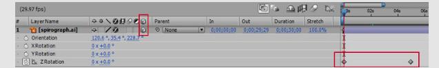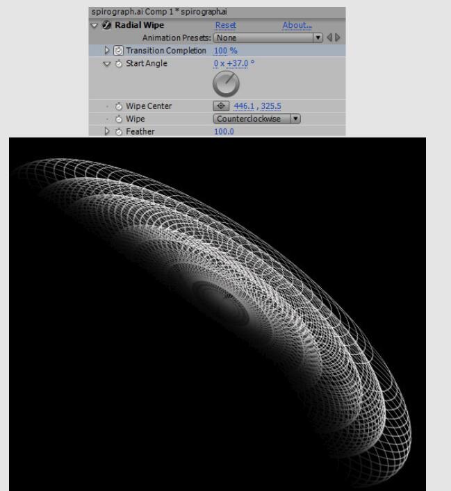 右击图层,选择径向擦除,完成个参数设置。增加羽化度,改变擦除中心,按下面的对话框设置参数。