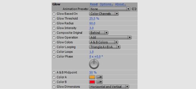添加一个发光效果,并选择如下参数。为了画面更富色彩和不同阴影效果可以增加颜色循环。