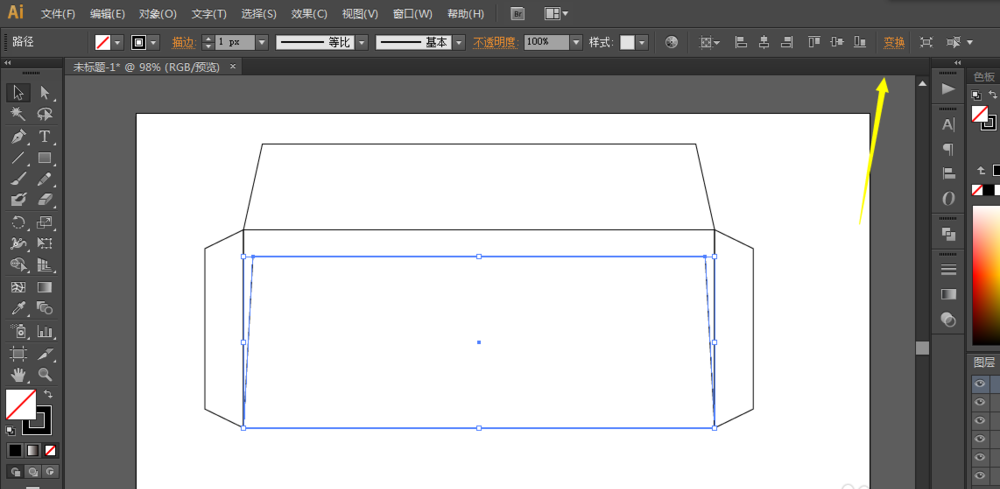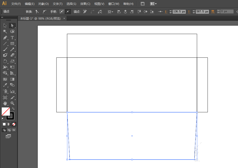 2、用直线选择工具调整长方形的形状大小。一个基本的展开形状就出来了。