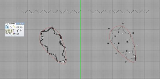 然后分别打开波浪闭合线的控制点,左侧点很密集,右侧比较稀疏,相比之下,右侧的波浪曲线方便后续的编辑与调节。这是两者细微的区别。