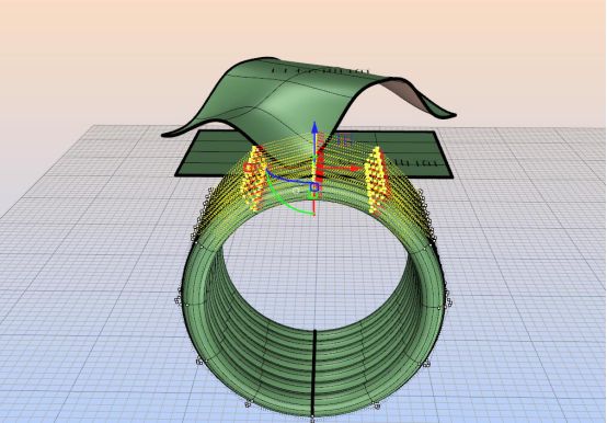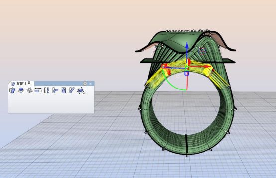 接着对这一组控制点进行沿曲面流动,戒圈就发生了变化。
