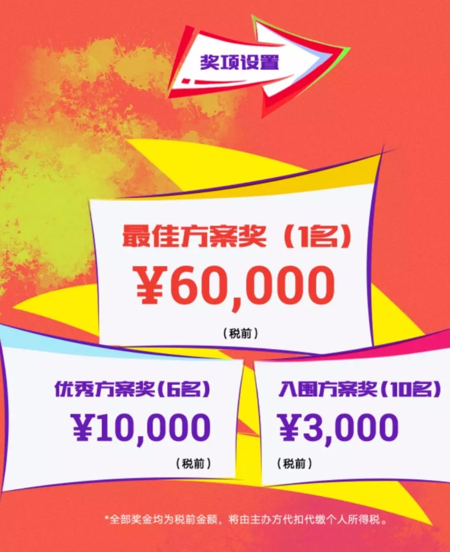*全部奖金均为税前金额,将由主办方代扣代缴个人所得税。
