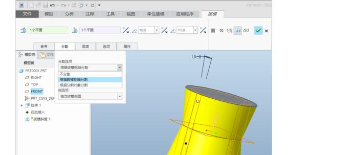 在“分割”里,可以选择不分割、根据拔模枢轴分割或者根据分割对象分割