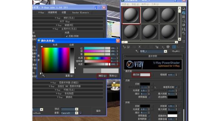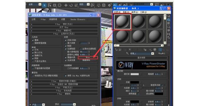 按F10打开渲染设置,执行v-ray → 全局开关 → 勾上覆盖材质。