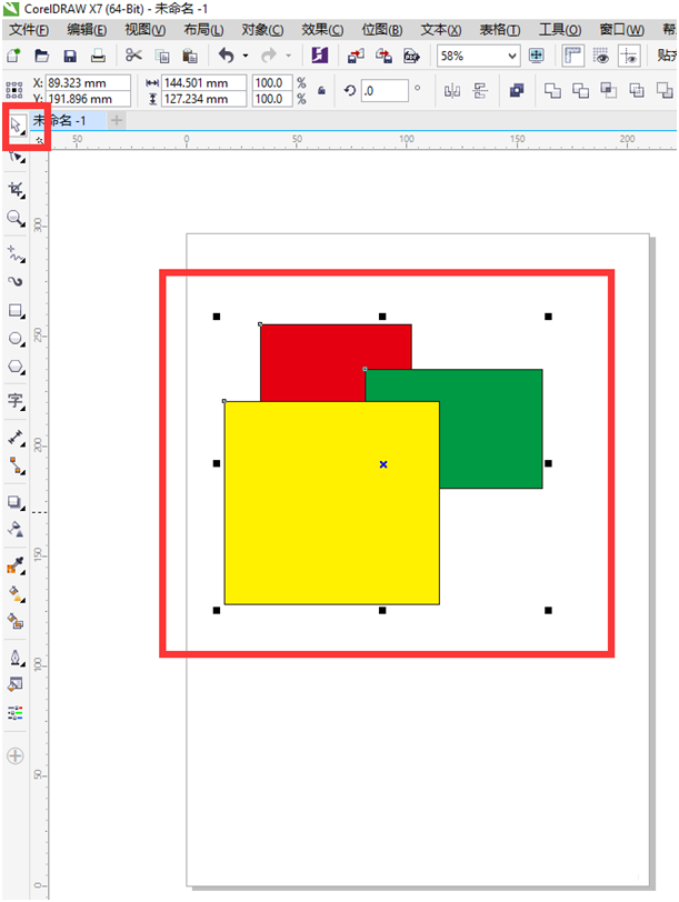 4、现在我们来讲这三个矩形进行编组,选中工具箱中的选择工具,选中这些需要编组的所有矩形,如下图所示。