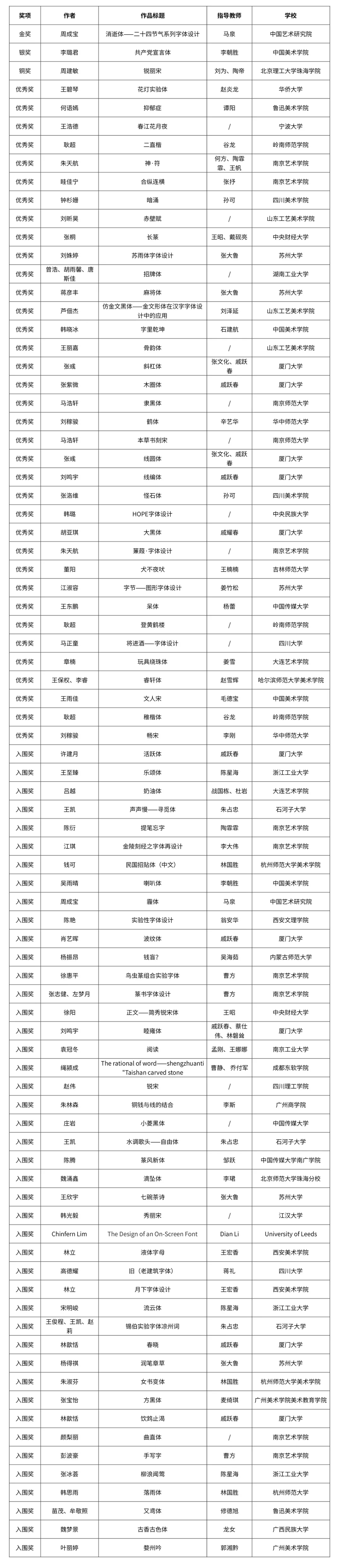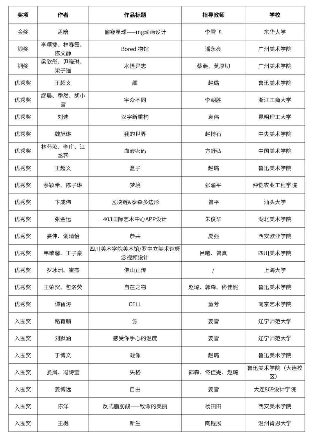 由于各大院校寒假临近,我们将在下学期开学后通知获奖证书与作品集的邮寄时间,请各位获奖者及时关注官方网站与公众号的消息,再次祝贺获奖的小伙伴们!
