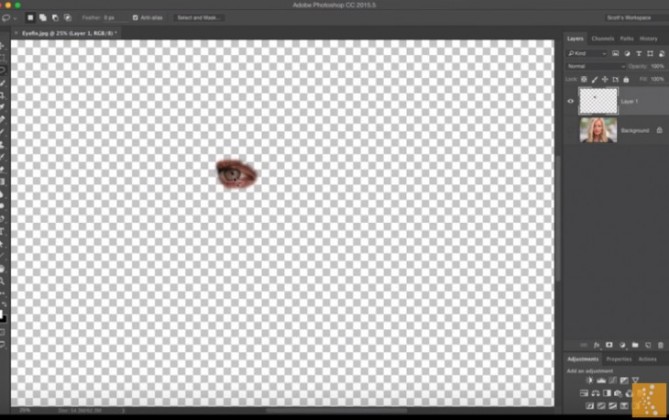 上一个步骤已成功复制了眼睛,现在可以把它拉到不完美的眼睛上。