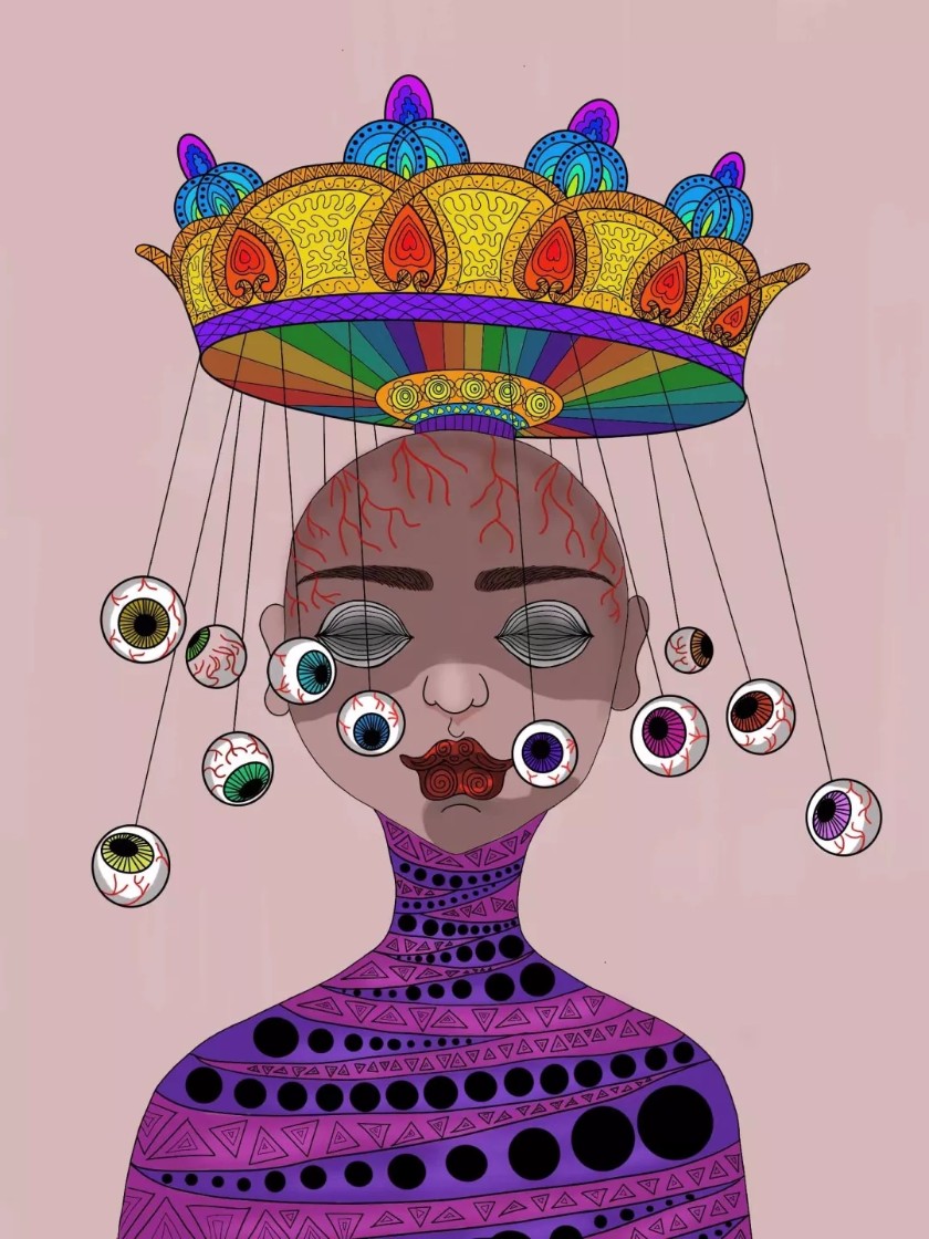 创作灵感一部分源于难得的梦境,剩下一部分目前大约来源于我悲伤的情感,突然发现悲伤真的很能给人带来灵感,不过可能每个人不同,有的人快乐会有灵感,那也有人悲伤会有灵感,我属于后者,所以这种情绪放大之后就想通过绘画释放出来,这可能也是我释放情绪的途径。