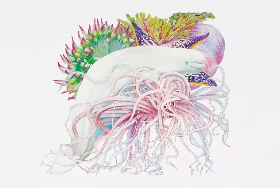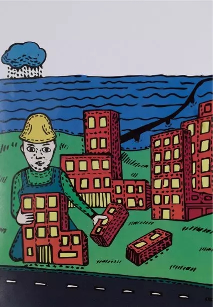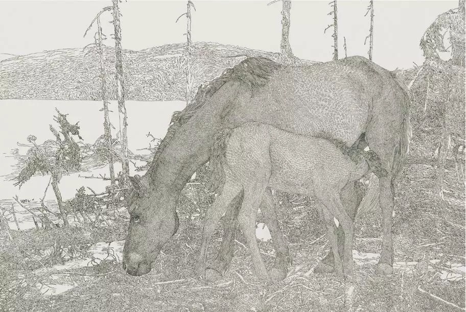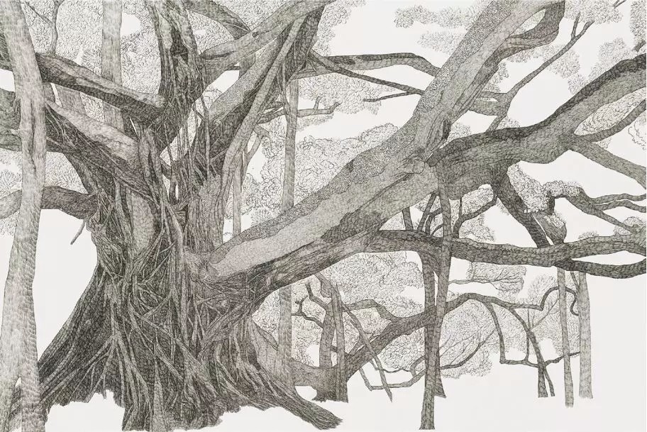 这一切源于凝视。总有一个时刻,忙碌的心平静下来,注视到身边的一些细节,对墙上或地上的斑痕产生丰富的联想,并惊叹于这些往往异于常识的造型。日本奈良市伊水园的院墙上斑痕累累,这里是想象力的舞台。灰墙上青苔遍布,爬山虎的脚印、泥巴胡乱抹过的痕迹、雨水及潮气浸染的颜色都被保留下来。这些痕迹叠加错落,彼此交谈,构成种种印象。有飞跃水面的鱼群,紧锣密鼓的乌云......时间将它们一一凝固,本书的这些插图就源于此。