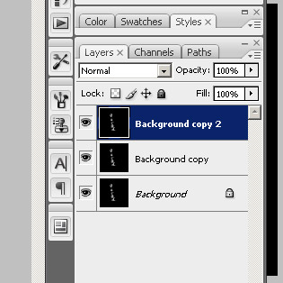 恢复第一层可见。把上面这两层的 混合模式都改为 “滤色”。第一层用曲线稍微调暗一点,不要太晃的感觉,然后适当减低这两层的不透明度。