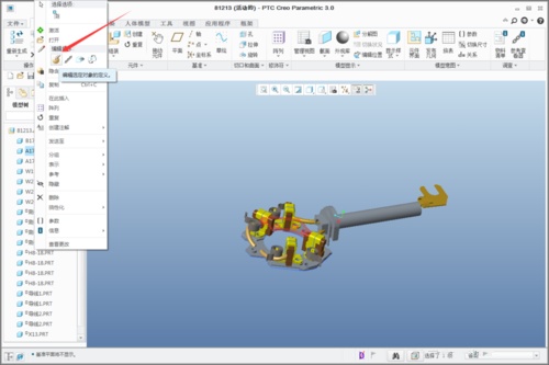 然后我们在左边的模型树中选择要重新装配的零件,点击鼠标右键选择编辑定义;
