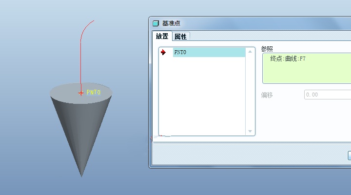 此时我们可以看到草绘放置点选择的是上一步的PNT0.