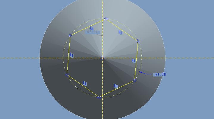 点击控制面板上的草绘按钮,进入草绘环境,使用【调色板】,拖出六边形。