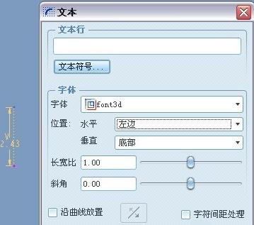 单击【文字输入工具】,在草绘区域单击从下到上拉条字体的范围,如果你是从下拉下则字体是倒立的。此时会弹出【文本输入对话框】,如图