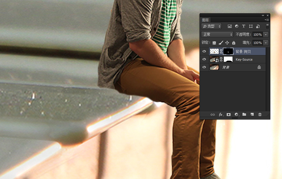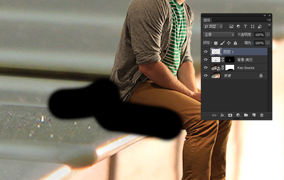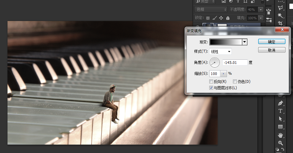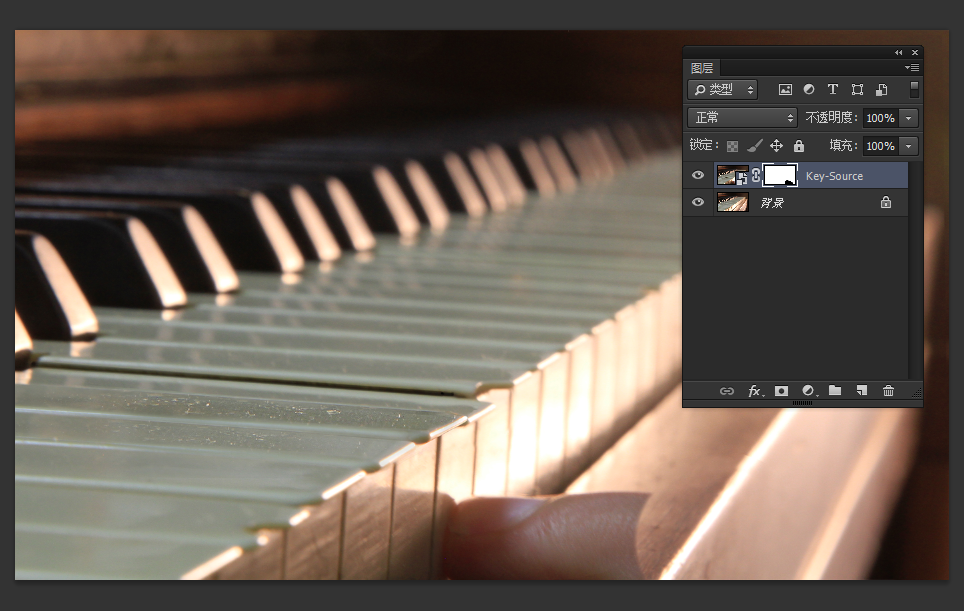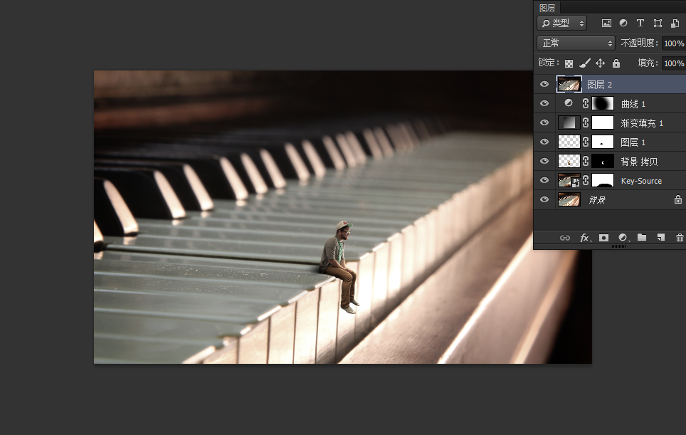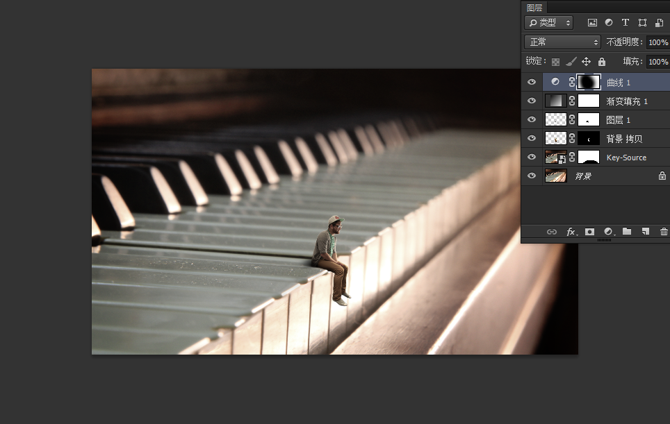 画笔把应该给琴键遮挡的部位擦去,现在人物是坐在琴键上的。