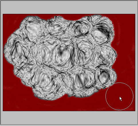 9. 现在要用面板左边从上至下第四个(使画面收缩)和第五个工具(使画面膨胀)来加工出爆炸时的烟雾的团状体积感。这一步可能稍稍有点难度,因为效果是因人而异的,可以一边画,一边回忆看到过的电影中的爆炸效果是什么样的。